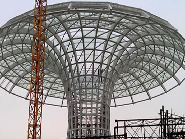 二、球形网架结构因其结构新颖,受力合理,自重轻、用钢量低等优点。如大型体育场馆球形瑞安螺栓球网架、公共场馆球形网架、电厂瑞安螺栓球网架、水泥工业球形网架、仓储物流球形网架、瑞安干煤棚工业球形网架、瑞安收费站瑞安加油站球形网架、展览中心、影剧院、商场、航站楼、候车厅、工厂瑞安车间、仓库、电视塔等球形螺栓球节点网架。国内球形网架结构主要分为:瑞安焊接球节点网架及螺栓球节点网架两种。螺栓球节点网架其构件工厂内加工量较大,现场安装便捷,适用于现场工期紧,瑞安施工条件、用电量受制约,网架形状复杂、瑞安杆件定位困难的异形结构。螺栓球节点球形网架系统基本由瑞安杆件、螺栓球、支撑支座等组成。按照节点形式可分为交叉瑞安桁架体系、四角锥体系、三角锥体系等。支撑方式多为固定支座支撑。对于大面积、大跨度及有特殊受力或伸缩要求的网架结构可采用橡胶支座、滑移支座、球铰支座等支撑形式,以满足结构自身的受力稳定、均衡,便于内力释放等设计要求。
